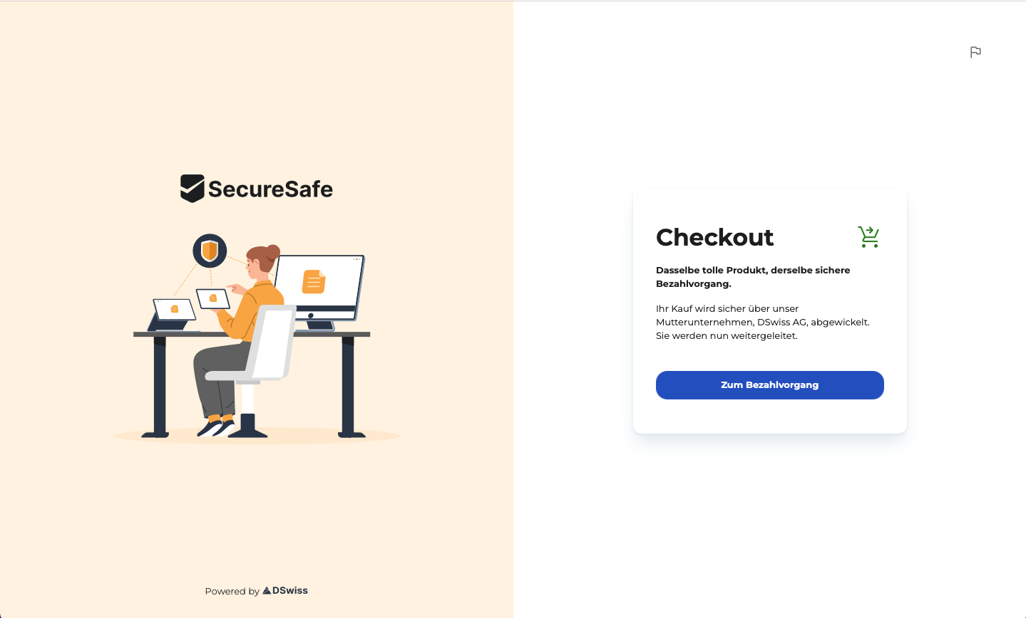 • Um Ihren Kauf abzuschliessen, werden Sie sicher zu unserer vertrauenswürdigen Muttergesellschaft DSwiss AG weitergeleitet.