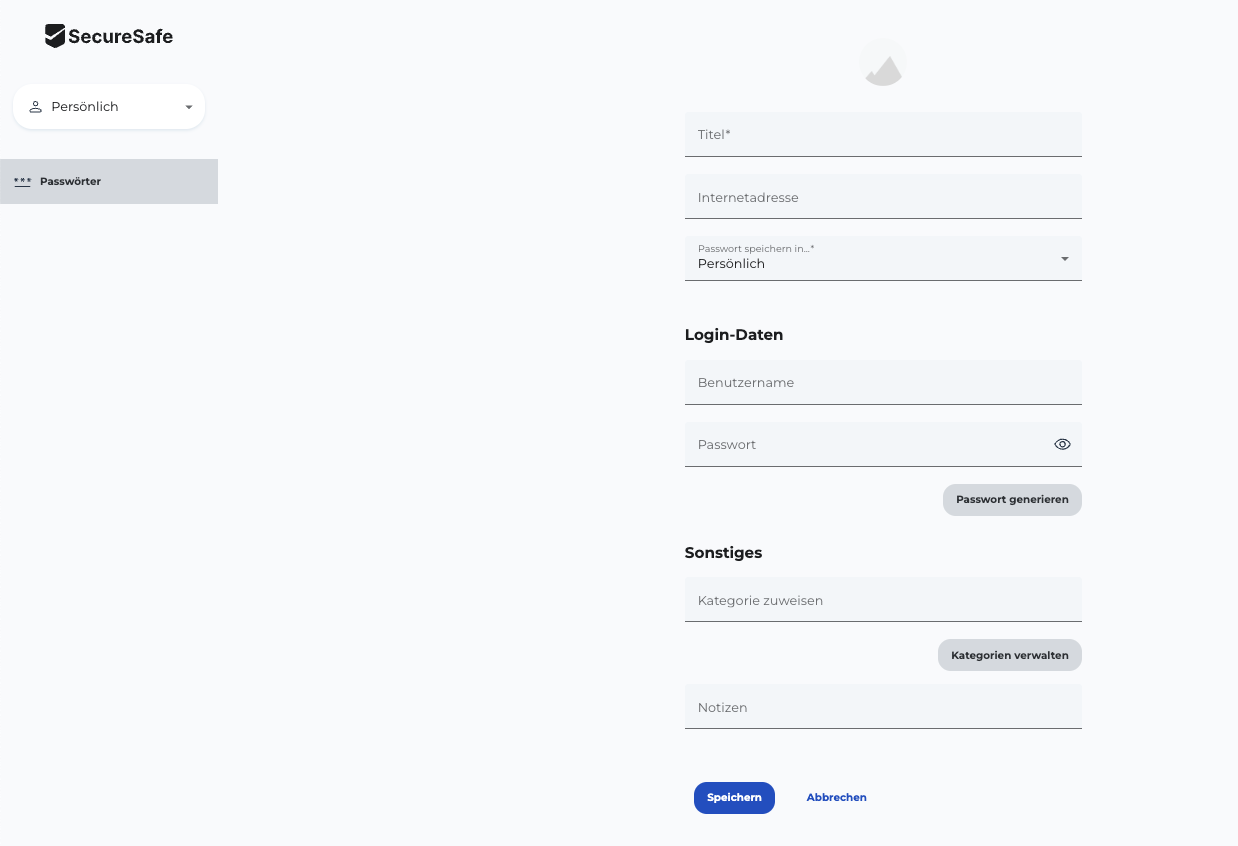 Folgen Sie den untenstehenden Schritten, um ein Passwort in Ihrem SecureSafe Pass Passwort-Manager zu erstellen.